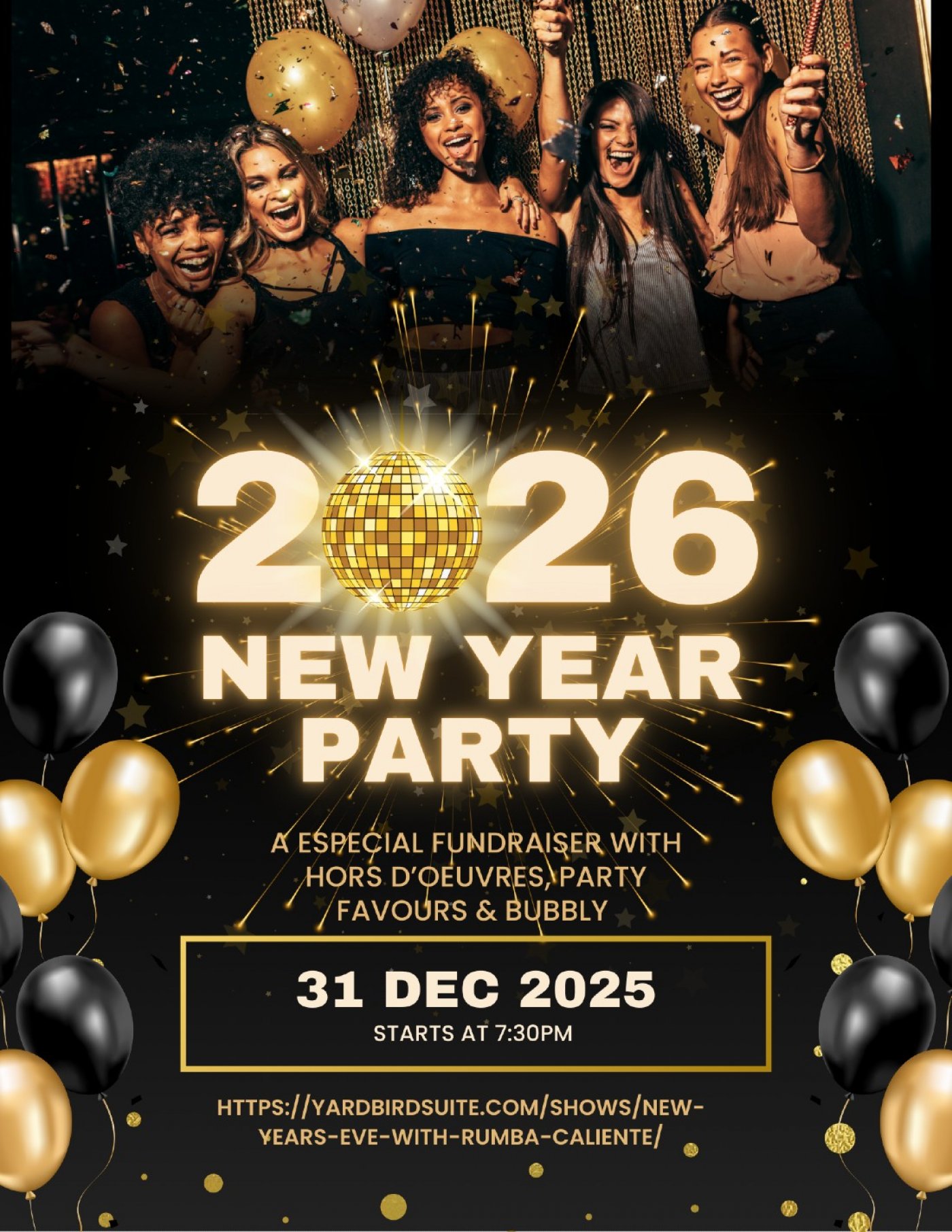A Special New Year's Eve Fundraiser with hors d'oeuvres, party favours, & bubbly.