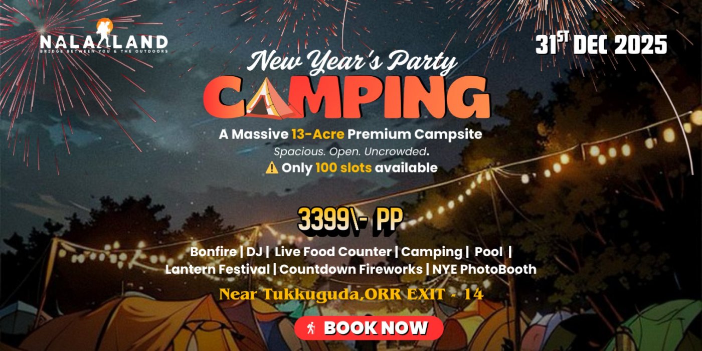 Welcome 2026 with a unique camping-style New Year celebration at Panchavati (Twyla Resort), spread across a peaceful 13-acre natural property near Hyderabad.