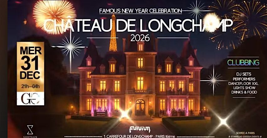✨✨ Vous rêvez de participer au Réveillon le plus féerique du jour de l'an ? Cette année, nous avons le privilège de vous donner RDV en mode CLUBBING dans le sublimissime Château de Longchamp, Paris 16ème dès 21h et jusqu'à 04h du matin..