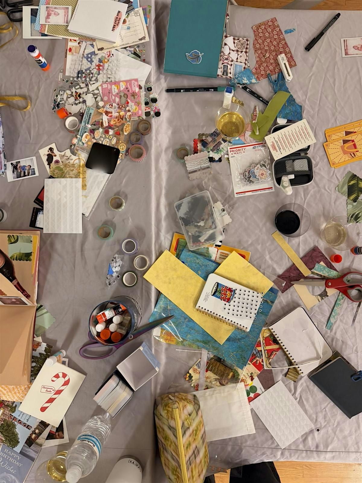- Access to a full table of craft supplies (markers, paints, stickers, washi tape, brushes, collage materials & more)