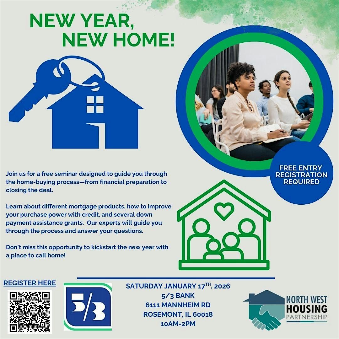 Are you looking to start the new year with a new home? Join North West Housing Partnership and Fifth Third Bank & ATM on January 17, 2026 at 10:00 AM to guide your through the home buying process from financial preparation to closing the deal.