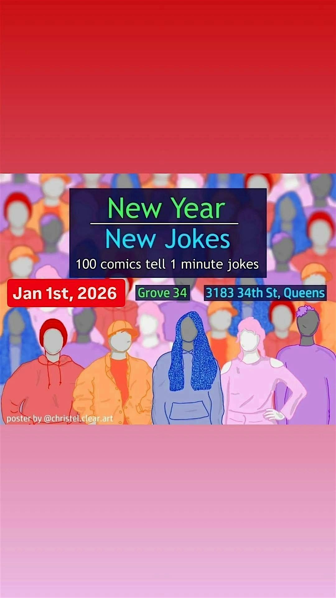 Brace yourself for an unforgettable night at Grove 34 on January 1st, starting at 8:00 pm! We've gathered an epic lineup of 100 comedians, each armed with a hilarious 1minute set.