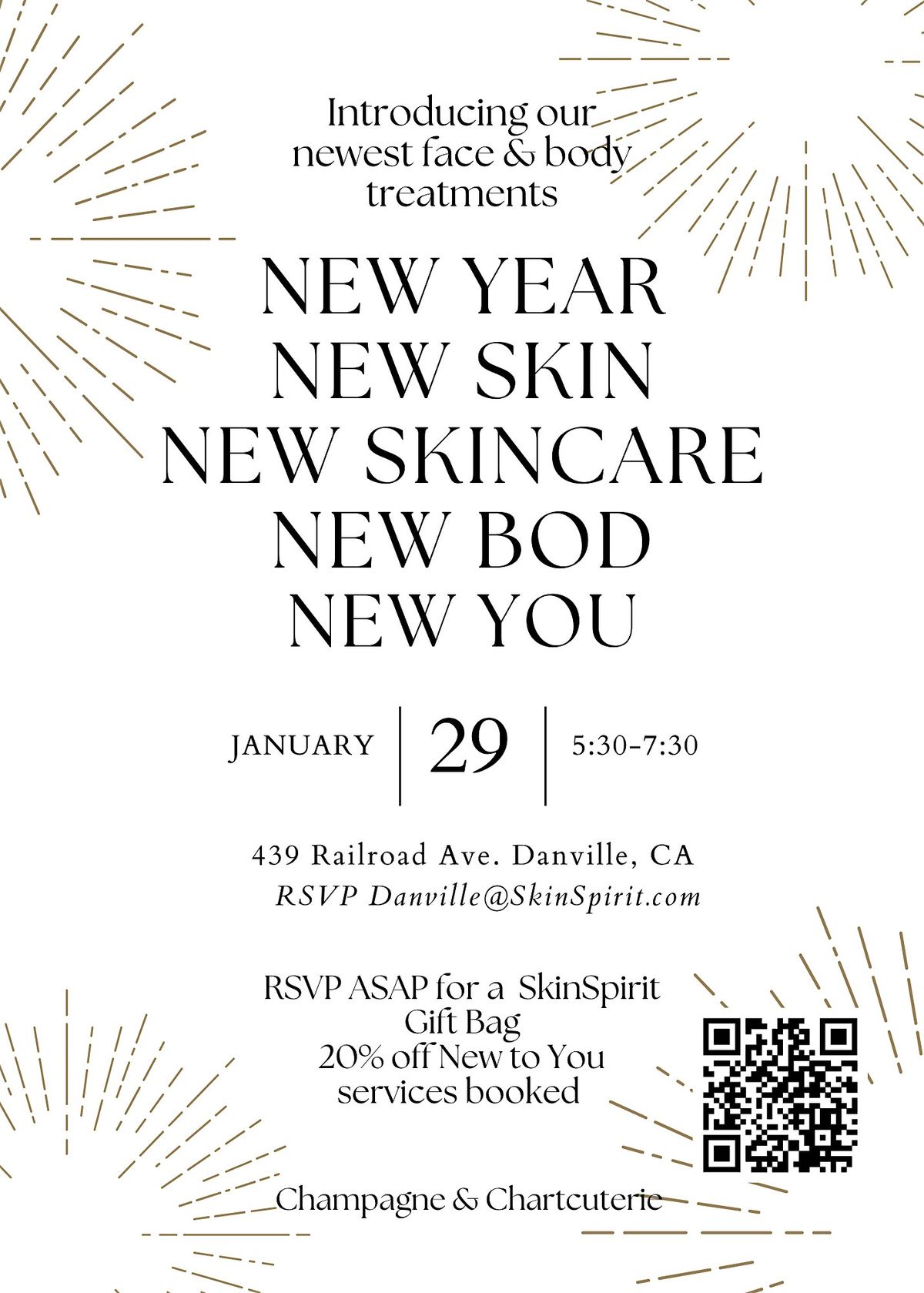 Get ready to kick off the year feeling fresh and fabulous! Join us in person for a fun and inspiring event all about embracing the new you. Discover tips and tricks to glow up your skin, boost your bod, and revamp your vibe. We will be unveling some of the newest treatments to market to enhance your own beautiful skin, while achieving the skin and body care that dreams are made of! It's the perfect way to start your year with confidence and good vibes. Don't miss out on this amazing chance to treat yourself and step into a brand new chapter!
