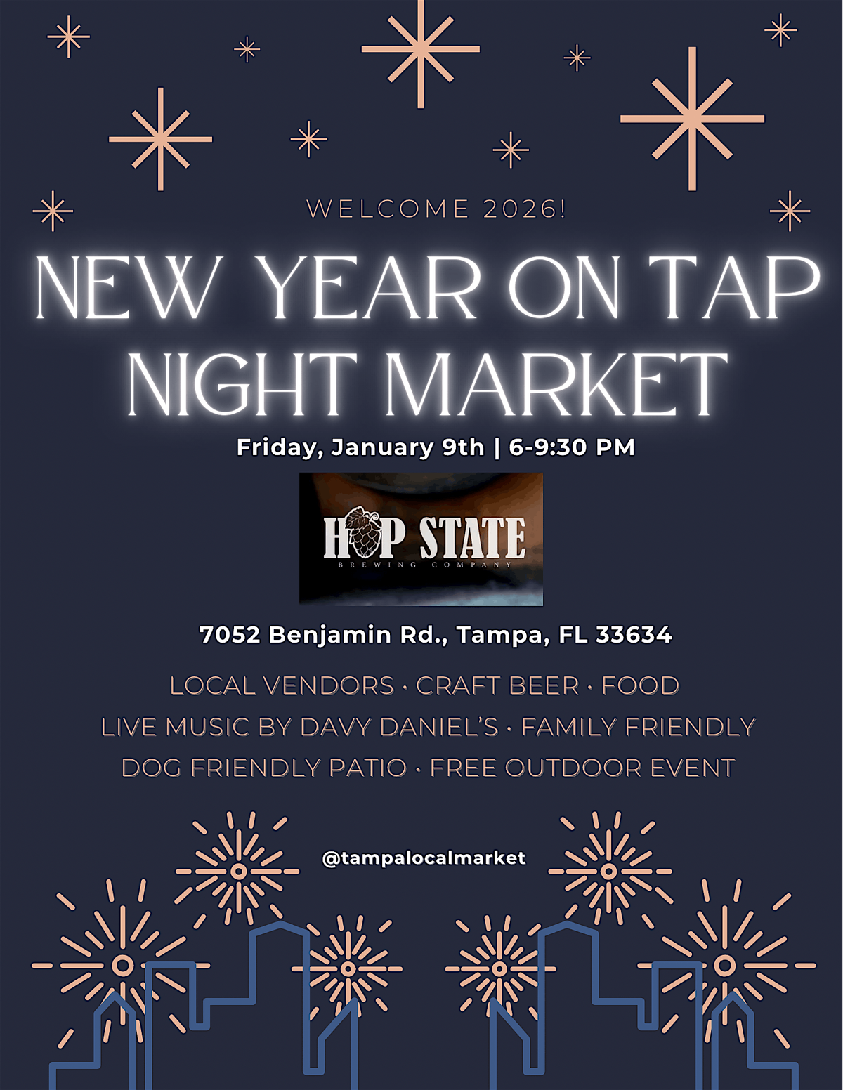 Get ready to kick off the year with a bang at the NEW YEAR ON TAP NIGHT MARKET! This in-person event is the perfect way to explore awesome local vendors, tasty bites, and refreshing drinks. So grab your friends, soak up the lively vibes, and let’s toast to new beginnings under the stars. Don’t miss out on the fun!