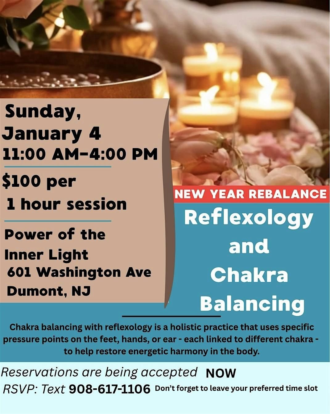#Reflexology #ChakraBalancing #EnergyHealing #HolisticWellness #DumontNJ #PowerOfTheInnerLight #SelfCare #NewYearReset #MindBodySpirit