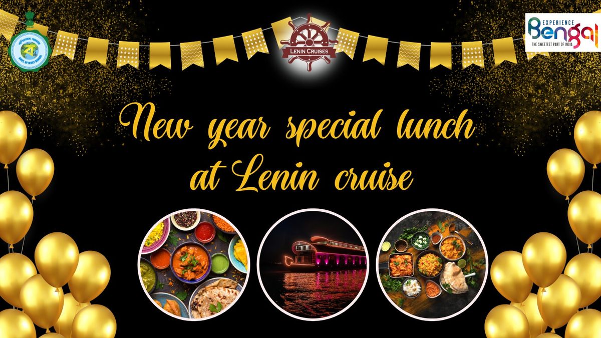 Refined Event DescriptionNEW YEAR SPECIAL LUNCH AND DINNER AT LENIN CRUISELunch Schedule:• Lunch Time: 1:00 PM – 3:00 PMLunch Menu:• Masala Orange• Blue Lagoon• Tea/CoffeeStartersVegetarian:• Veg Pakora• Paneer 65Non-Vegetarian:• Fish Finger• Drums of HeavenMain Course:• Butter Naan• Basmati Plain Rice• Basmati Pulao• Veg Korma Gravy• Katla Kalia• Doi Murgi• Dal Fry• Paneer Masala Gravy• Chutney• Papad• Gulab Jamun• KulfiEnjoy a memorable New Year celebration featuring soulful live DJ music, refreshing mocktails, and an indulgent feast, all set aboard a luxurious cruise. Experience an elegant and relaxing afternoon as you savour a carefully curated menu paired with serene views.