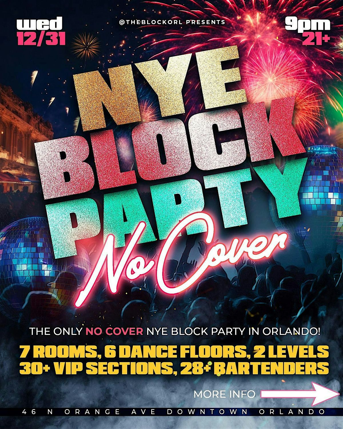 The only NO COVER block party in DTORL !! 7 venues 7 bars!! 21+ midnight shot included + party favors while supplies last.