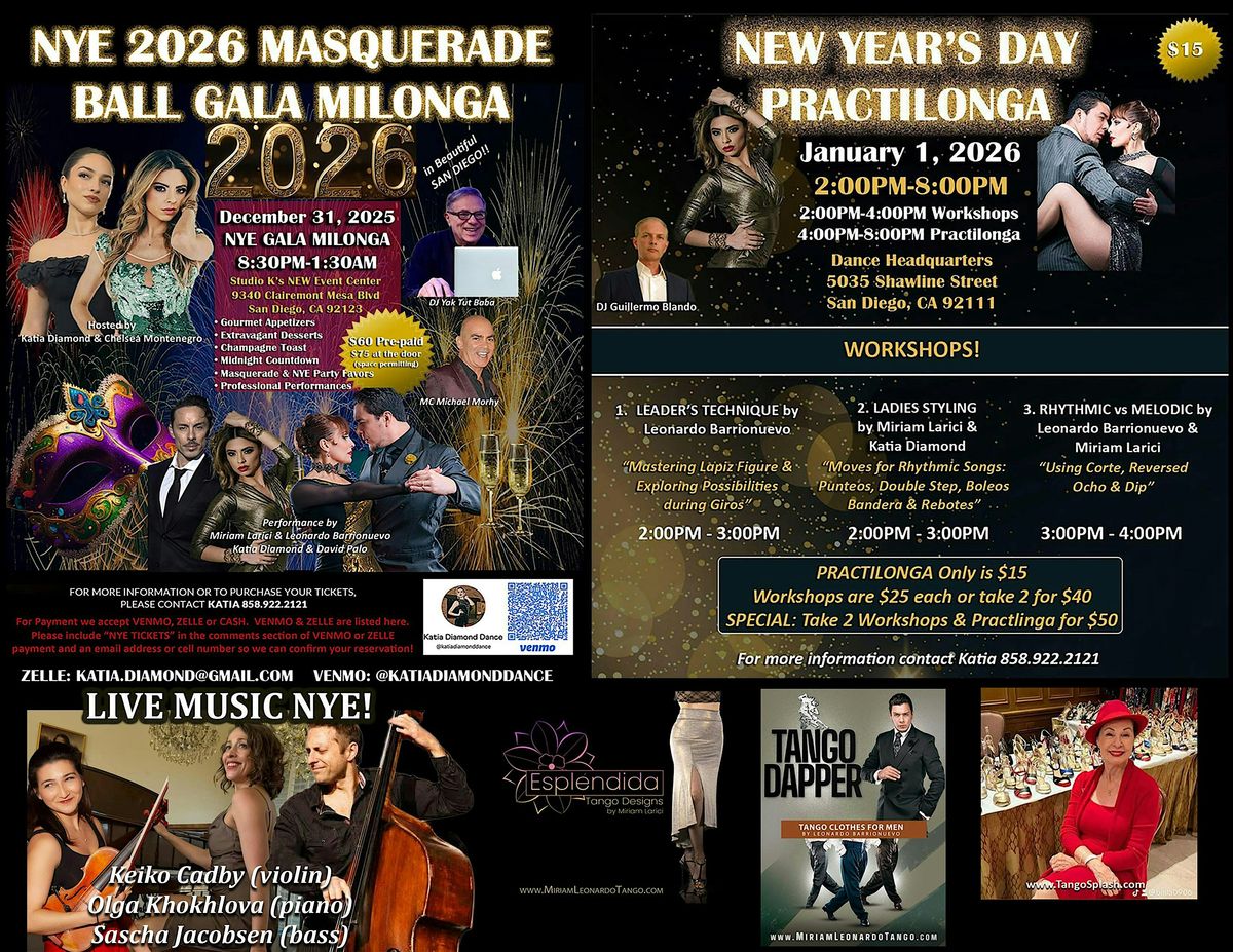 NYE 2026 MASQUERADE BALL GALA MILONGA - WEDNESDAY DEC 31st hosted by Katia Diamond & Chelsea Montenegro.