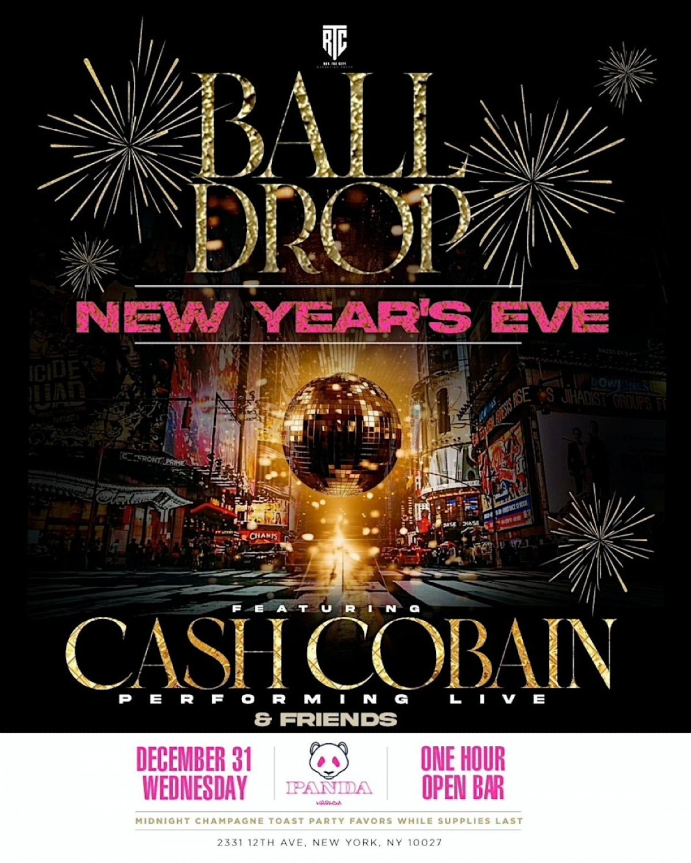Cash Cobain Performing Live NYE 2026 at Panda NYC! 1HR open bar, + midnight champagne toast complimentary party favors