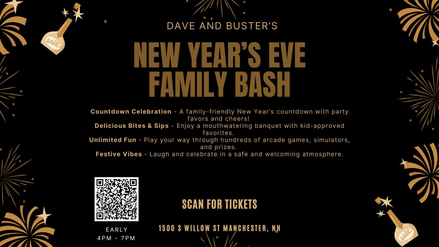 Get your tickets now for New Years Eve at Dave & Buster's in Manchester!