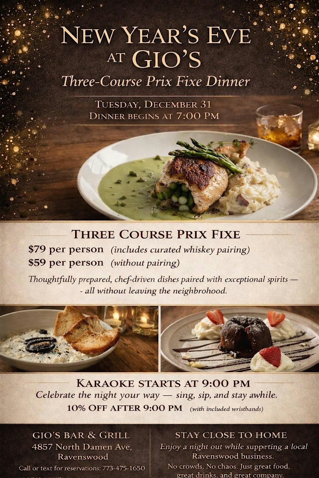 Get ready to ring in the new year with us at Gio's! It's gonna be a fantastic night filled with great vibes, awesome people, and plenty of cheers as we say goodbye to the old and welcome the new. Join us in person for an unforgettable celebration. Don't miss out on the fun—bring your friends and your party spirit!