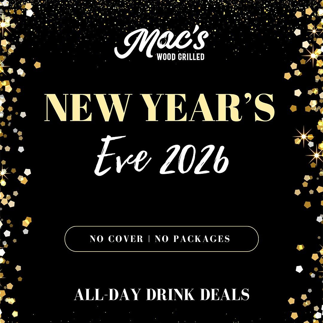 Sports fans can indulge in a day full of college sports: the ReliaQuest Bowl (11 a.m.), the Sun Bowl (1 p.m.), the Citrus Bowl (2 p.m.), and the Las Vegas Bowl (2:30 p.m.). The season’s first College Football Playoff Quarterfinal Game, the Cotton Bowl, closes out the bowl lineup with kickoff at 6:30 p.m. Mac’s Wood Grilled is open from 11 a.m.-2 a.m. Wednesday, December 31 (expanded hours) and the kitchen is open from 11 a.m.-11 p.m.