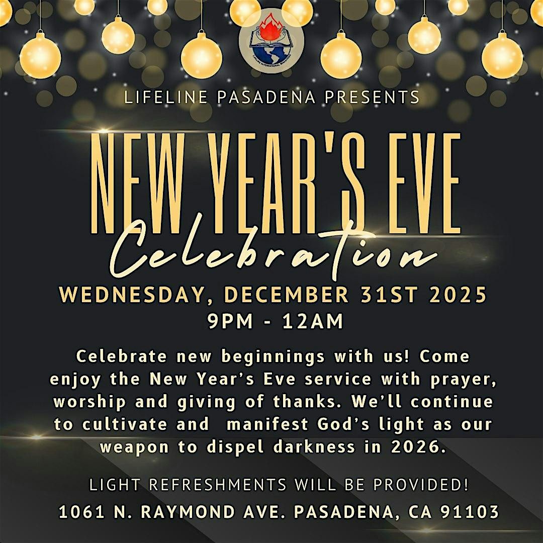 Celebrate new beginnings with us! Come enjoy the New Year's Eve service with prayer, worship, giving of thanks.