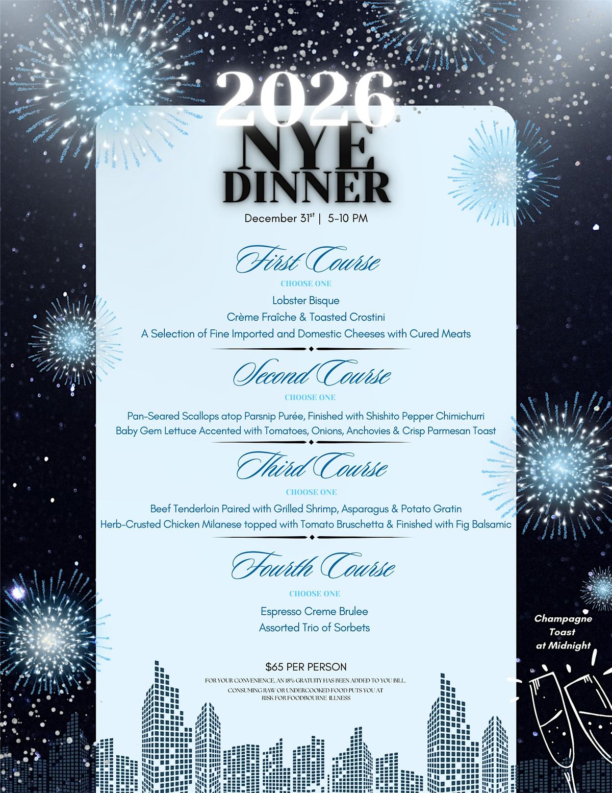 4 Course meal prepared by our exective chef