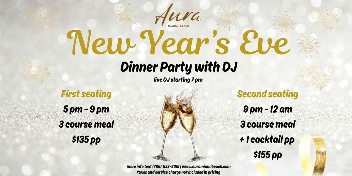 Celebrate New Year’s Eve at Aura Miami Beach with an elevated dinner party combining refined cuisine and vibrant music. Guests will enjoy a curated 3-course menu in a stylish setting, with a live DJ starting at 7:00 PM creating the perfect festive atmosphere.