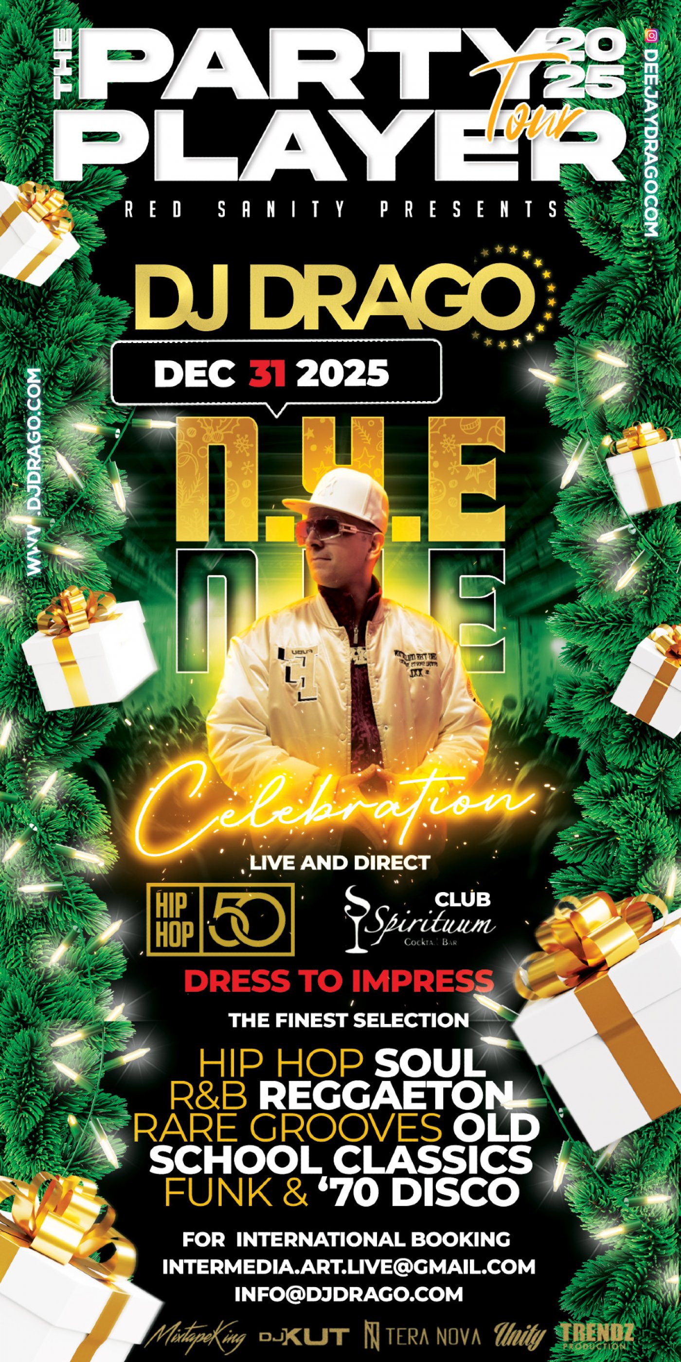 Dalle 22:00 del 31 dicembre alle 2:00 del 1 gennaio 2026 potremmo entrare nel nuovo anno deliziati da una impareggiabile selezione internazionale di musica Hip Hop R&b americana. L'unico capodanno di altissimo livello di questo genere in tutta la Toscana.