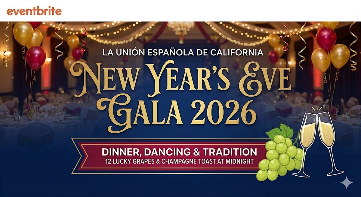 Come celebrate the New Year at the Union Española de California! Join us for an unforgettable evening of dinner, dancing, and good friends as we say goodbye to 2025 and welcome 2026 in style.