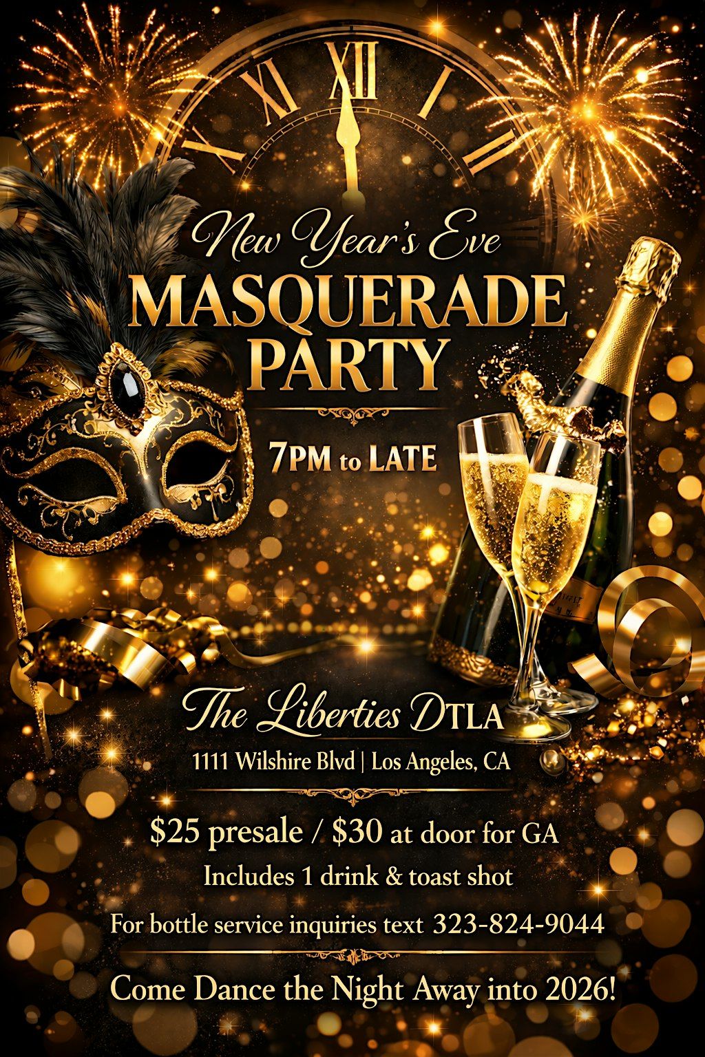 Step into the mystery and glamour of New Year’s Eve at The Liberties DTLA as we ring in the New Year with an unforgettable Masquerade Party. Dress to impress behind your most elegant mask and immerse yourself in a night of luxury, music, and celebration.