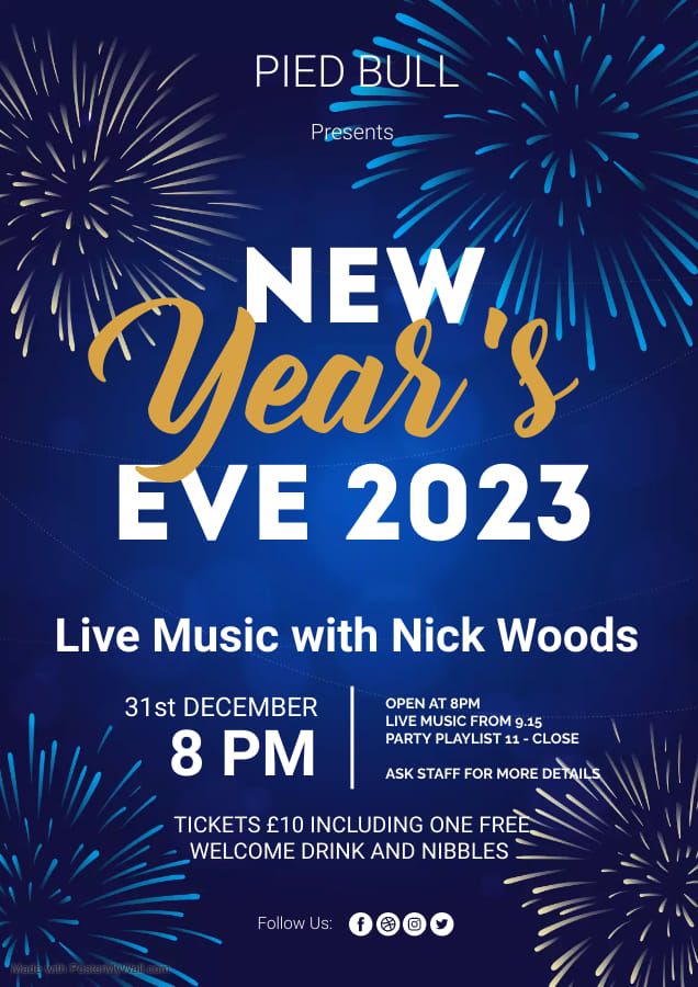 Tickets are £10 including 1 free welcome drink Live music from Nick Woods 9.15 - 11