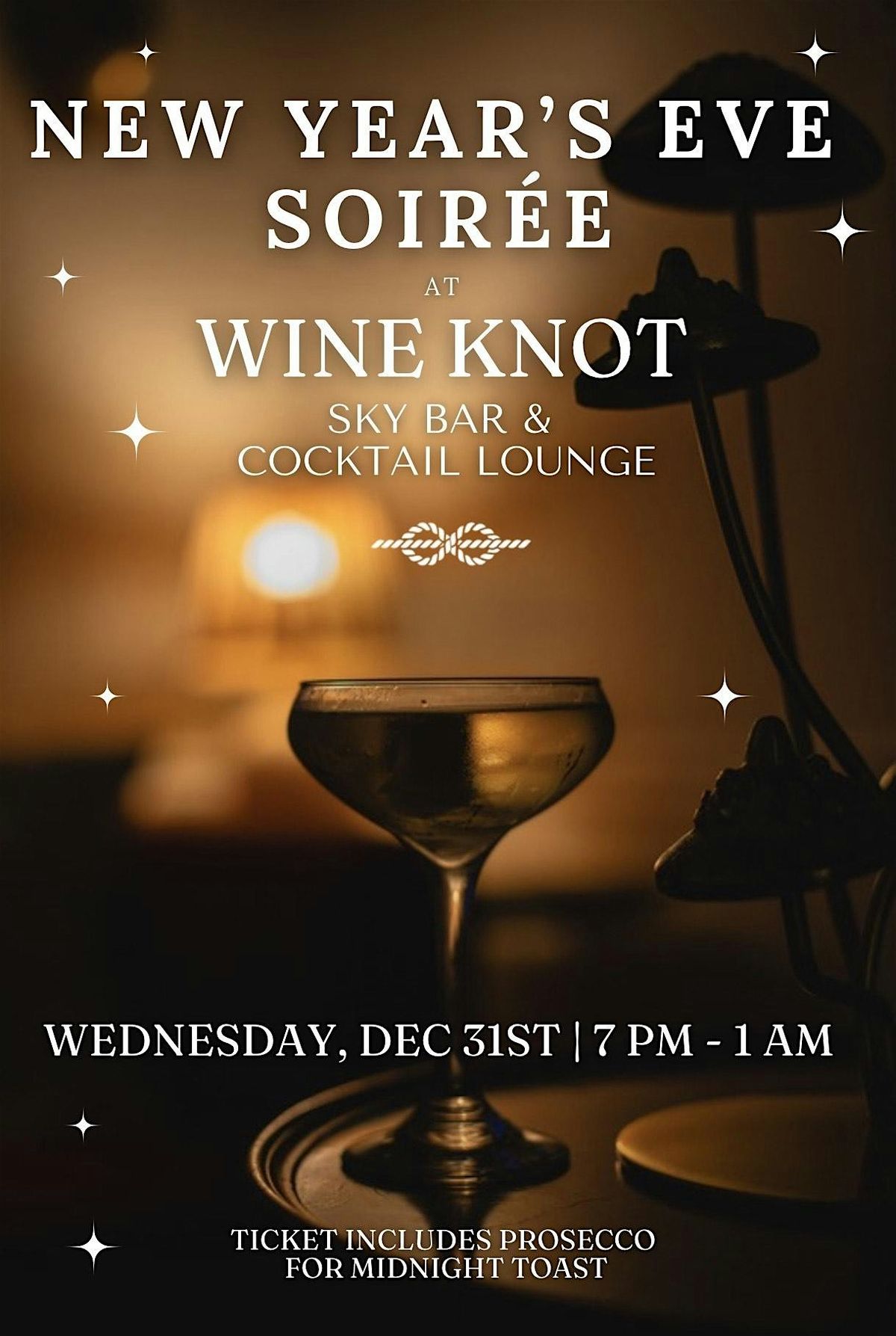 **New Year's Eve Soiree** at Wine Knot Sky Bar & Cocktail Lounge! Get ready to ring in the new year in style at our cozy cocktail lounge. Join us on **Wednesday, December 31, 2024** from 7:00 PM to 1:00 AM for a night of celebration and fun. Enjoy panoramic views of downtown Wilmington as you sip on delicious cocktails. Don't miss out on the hottest party in town! See you there!