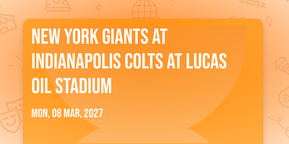 ✨ Enter a world of endless possibilities at New York Giants at Indianapolis Colts at Lucas Oil Stadium, where every moment tells a story! 🏛️ The stunning Lucas Oil Stadium in vibrant Indianapolis, IN transforms into a realm of wonder on March 8th, 2027 at 11:59 PM. 🌟 They have crafted an experience that goes beyond the ordinary, combining elements of surprise, delight, and pure entertainment. Every detail has been thoughtfully considered to ensure your journey with us is nothing short of extraordinary. 🎯 Join fellow adventure seekers and memory makers in this celebration of imagination and innovation. 🎊 Reserve your spot today and be part of something truly special!