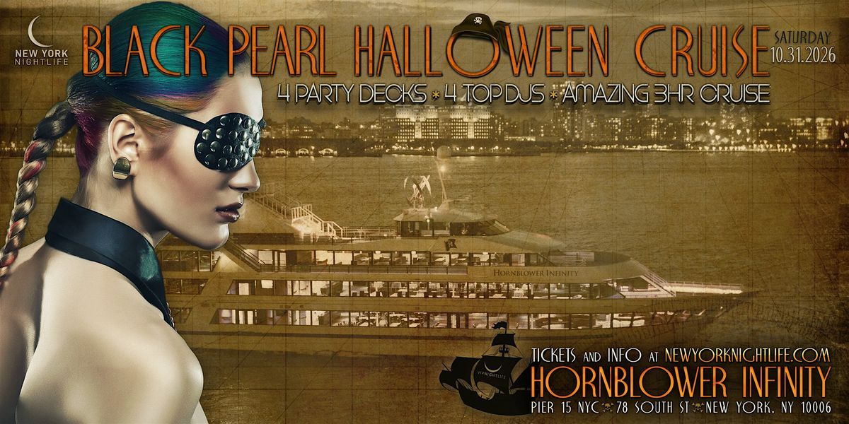 Most popular Halloween party cruise in New York: The Black Pearl is on the Hornblower Infinity with 4 Decks, 4 Live DJs, and Amazing Views!About this Event