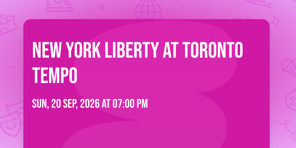 📍 Location: 43.6356, -79.415🎉 Welcome to New York Liberty at Toronto Tempo, where the impossible becomes possible and dreams take flight! 🏛️ Join us at Coca-Cola Coliseum in the heart of Toronto, ON for an event that will redefine your expectations. 📅 On September 20th, 2026 at 07:00 PM, witness the transformation of space and time into something truly magical. ✨ It's a curated experience combining the best of innovation, entertainment, and community spirit, creating moments that will be remembered for years to come. Whether you're a first-time visitor or a seasoned enthusiast, prepare to be amazed. 🎊 Book now to ensure your place in this unforgettable experience!