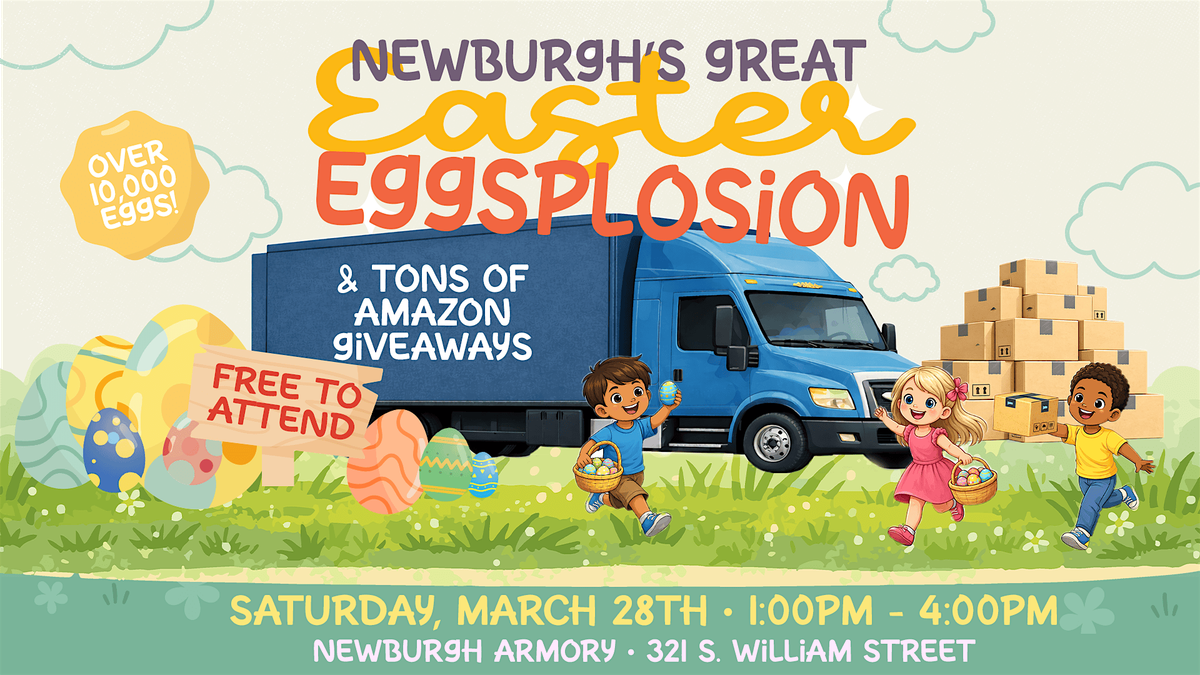 Get ready for one of the biggest and most exciting Easter celebrations in the Hudson Valley! Newburgh’s Great Easter Eggsplosion is a free, family-friendly event filled with high-energy fun and unforgettable moments for all ages. With over 10,000 eggs, golden egg prizes, Amazon giveaways, carnival games, music, face painting, inflatables, food, and more; there’s something for everyone to enjoy.