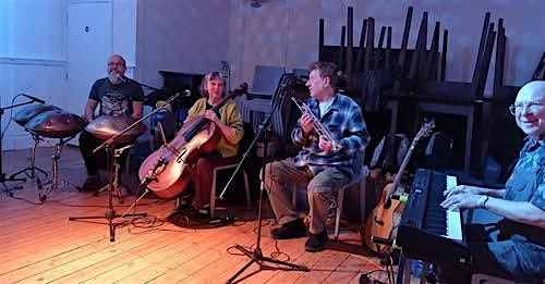 Our collective of experienced musicians love to come together to play improvised music for our Live Rhythms dance session. We offer a guided warm up followed by uninterrupted music that builds in energy and a relaxation to finish our session. We bring a wide range of instruments including West African drums, handpans, cello, piano and keyboards, guitar trumpet, saxaphone, gongs and voices