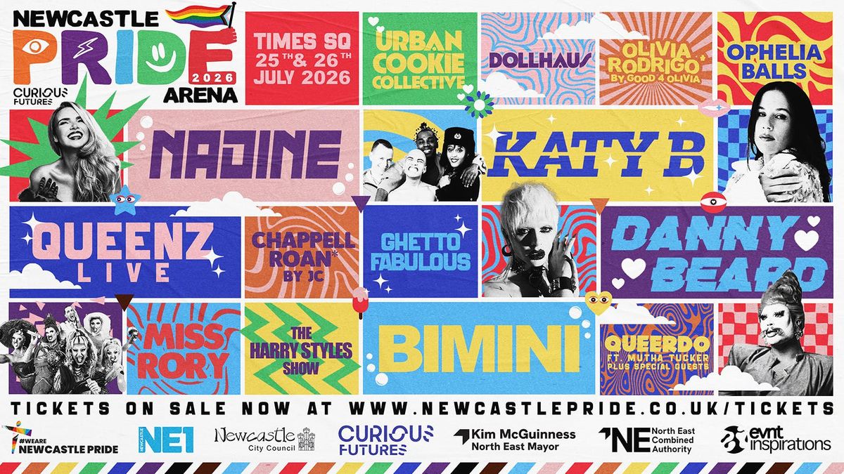 NEWCASTLE PRIDE ARENA 2026 đOur Biggest Line-Up Yet.đ Times Square, Newcastle Upon Tyneđ Saturday 25th & Sunday 26th July 2026