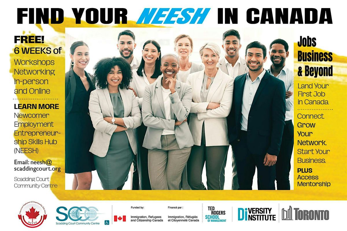 NEESH is a free, 6-week program designed to support newcomers to Canada (Permanent Residents and Convention Refugees). Whether you’re looking to secure a job or start your own business, NEESH offers in-demand training tailored to your goals.