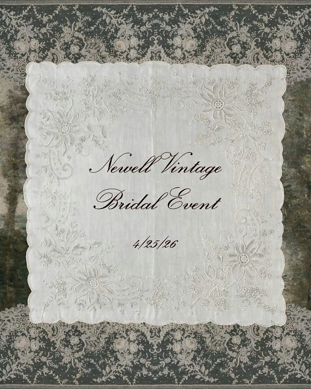 Join us at Newell Vintage for a special bridal event featuring a curated collection of vintage wedding dresses, veils, and accessories. Designed for the bride seeking something truly unique, this collection celebrates timeless silhouettes, rare finds, and pieces with history. Enjoy a personalized shopping experience in an intimate setting.