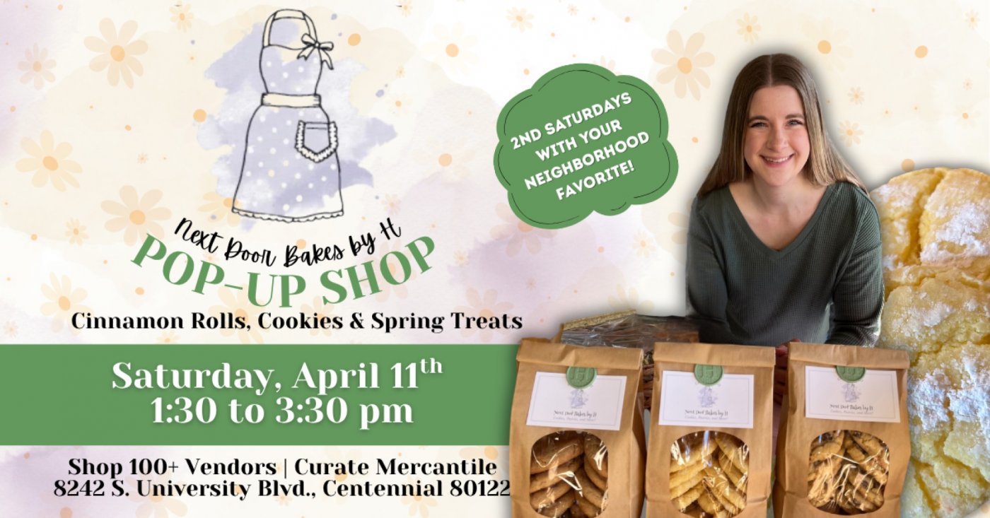 A Neighborhood Favorite!! Join us in welcoming local baker 'Next Door Bakes by H' to Curate Mercantile the 2nd Saturday of every month, for her deliciously sweet pop up!