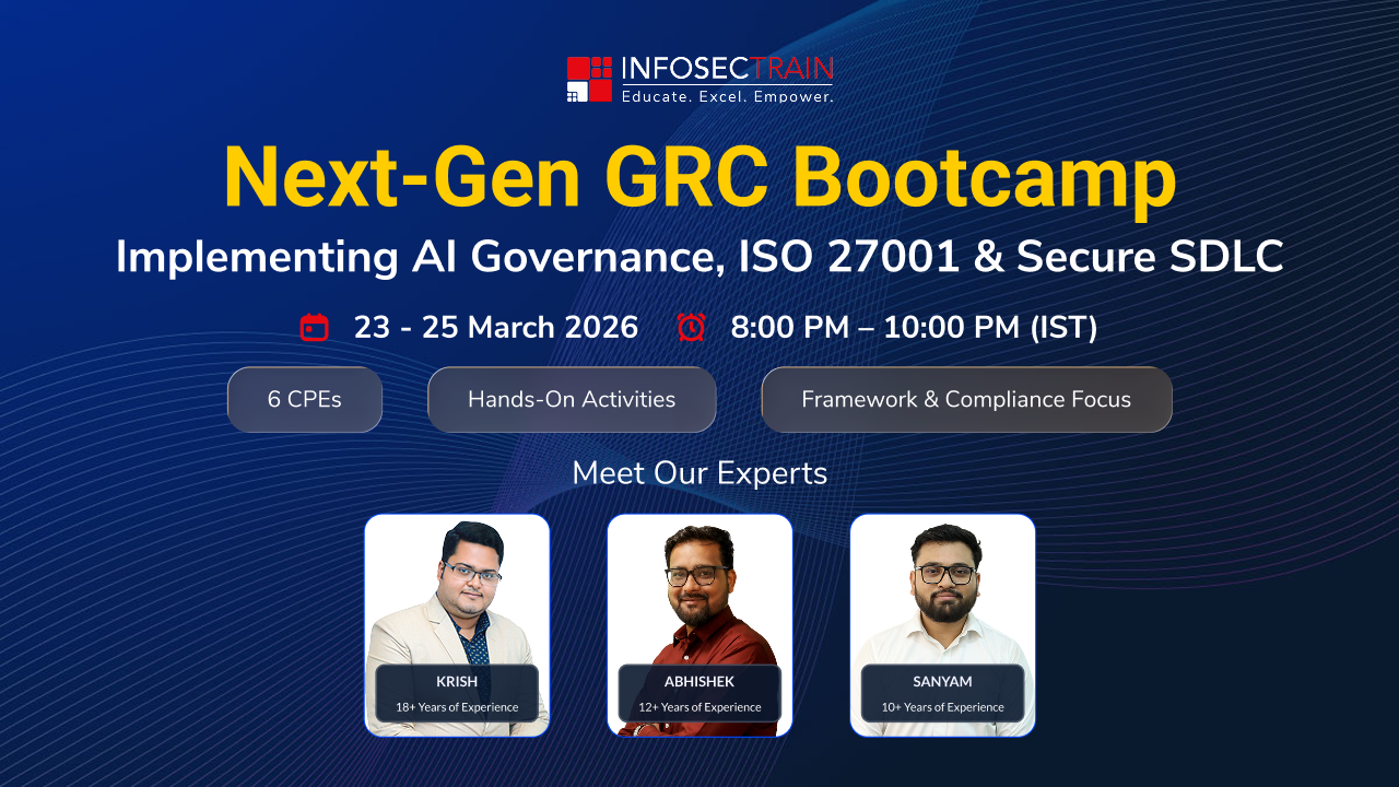 InfosecTrainβs Next-Gen GRC Bootcamp is designed for professionals who want practical implementation knowledge across AI Governance, ISO 27001, and Secure SDLC - all in one focused programme.