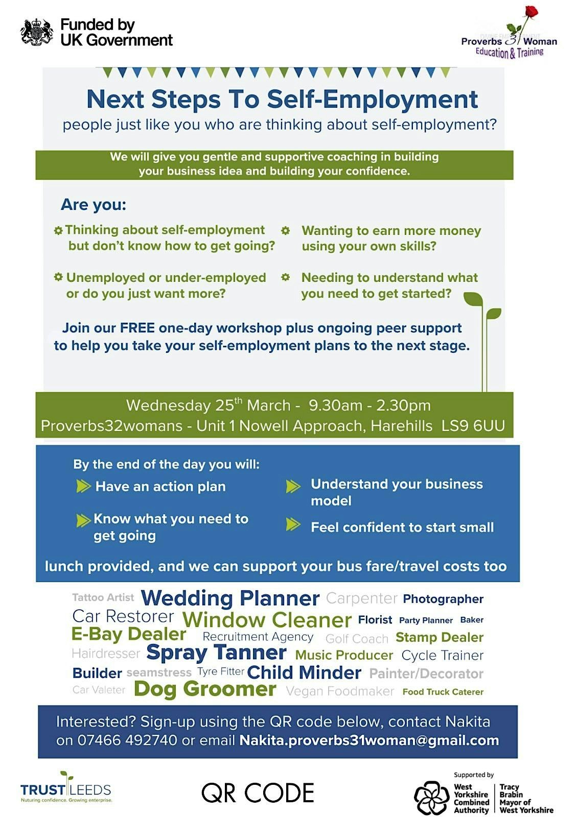 Join Trust Leeds and Proverb31Woman CIC for a one-day workshop all about taking your self-employment plans to the next step.