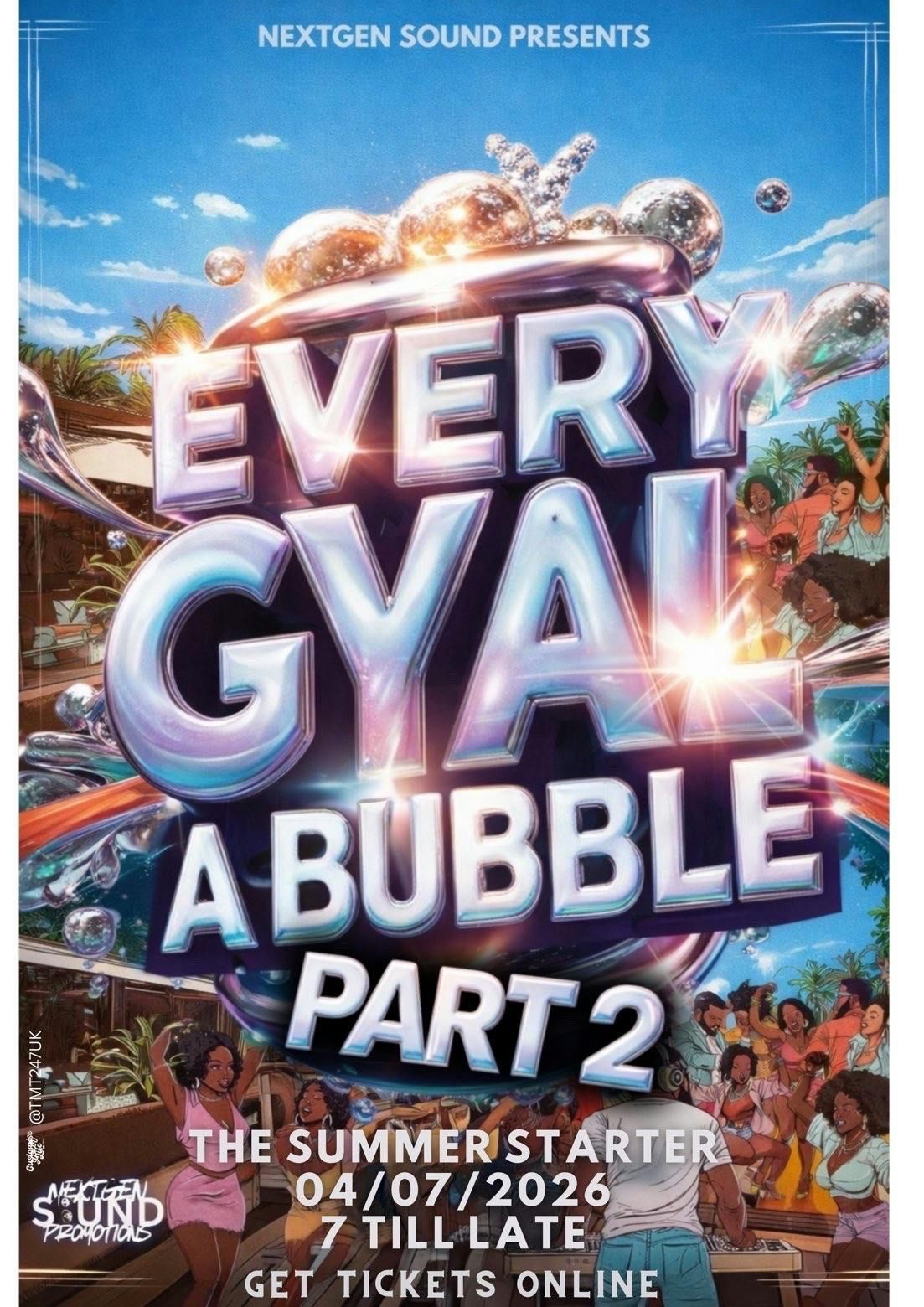 NEXTGENSOUND PROMOTIONS PRESENTS: EVERY GYAL A BUBBLE – PART 2Saturday 4th July 2026 | 7PM till late (Doors close 8PM SHARP – no entry after)