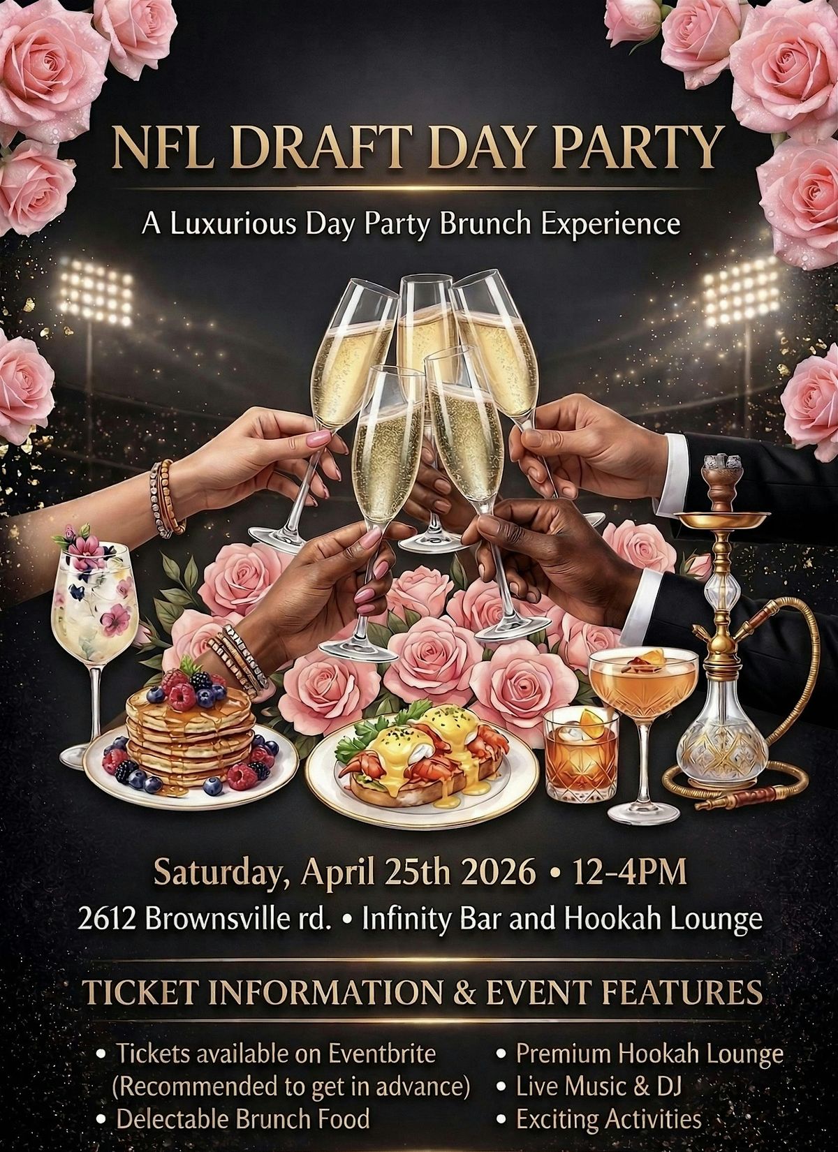 Get ready for a fun-filled NFL Draft Brunch Party at 2612 Brownsville Rd! Join us on April 25, 2026 at 12:00 PM (Eastern Time) for great food, good vibes, and plenty of draft day excitement. Whether you're a die-hard fan or just here for the brunch, this is the perfect way to kick off the NFL season with friends. Don’t miss out on the fun and tasty bites!