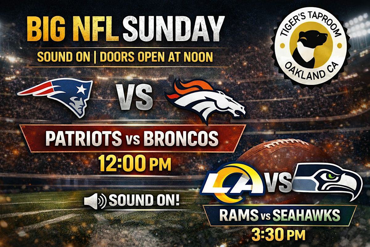 We’re opening early at Tiger’s Taproom for a full NFL Sunday with two marquee matchups.