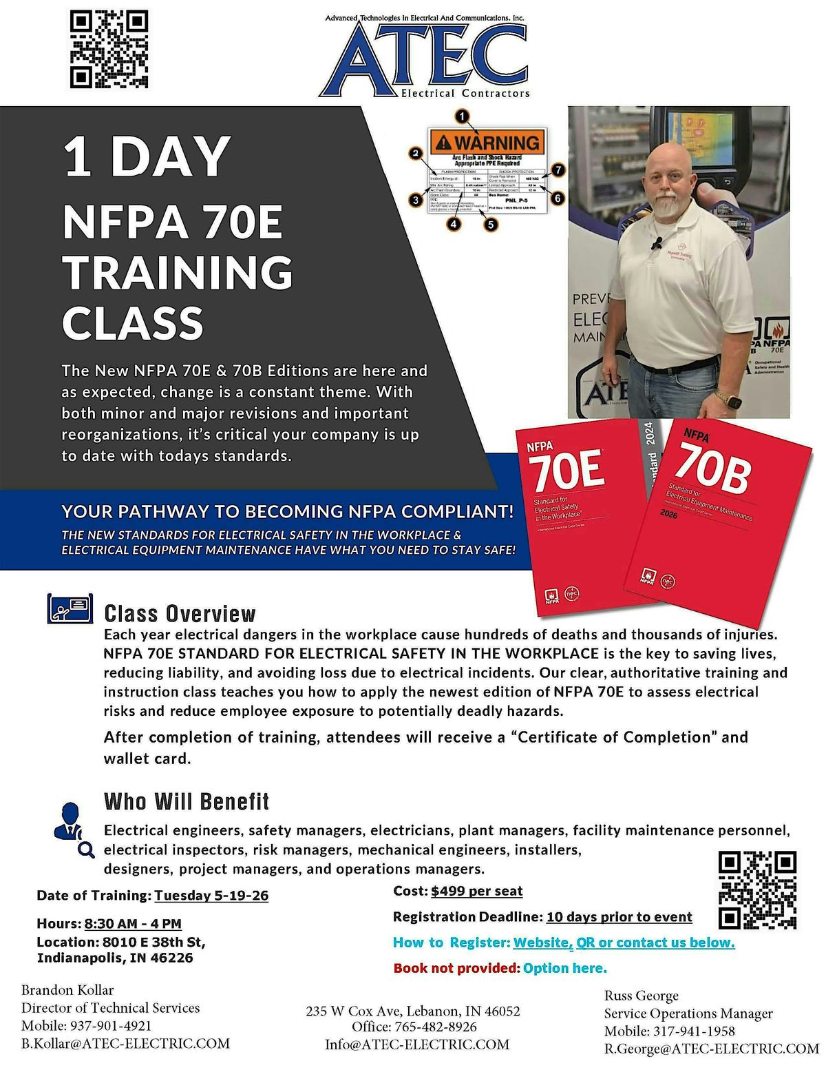 NFPA 70E: Standard for Electrical Safety in the Workplace is critical to protecting workers and organizations. This comprehensive training class is designed to equip participants with the knowledge and skills necessary to identify electrical hazards, apply safe work practices, and meet OSHA and NFPA 70E requirements.