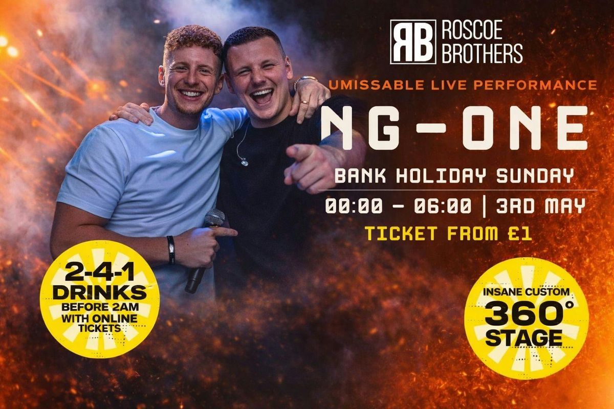 NG-ONE BANK HOLIDAY WEEKENDERSUNDAY 3RD MAY 202623:00 - 06:002-4-1 DRINKS BEFORE 2AM WITH ONLINE TICKETS