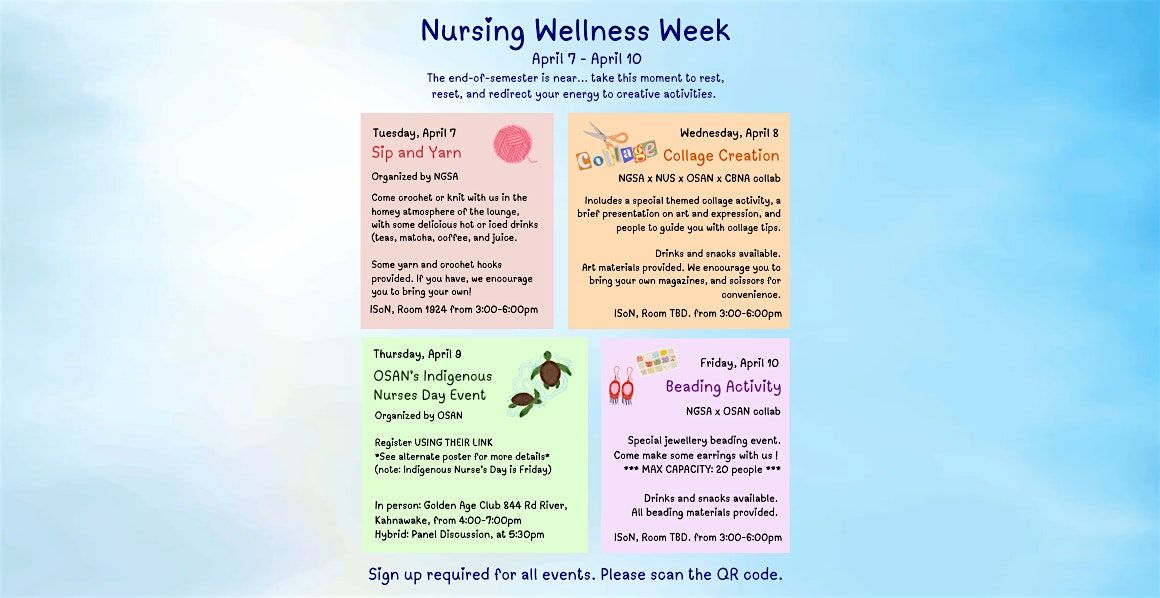 Take a moment to pause, recharge, and reconnect during Nursing Wellness Week at McGill’s Ingram School of Nursing. As the semester winds down, join us for a series of creative, low-pressure events designed to support your well-being, build community, and celebrate nursing students.