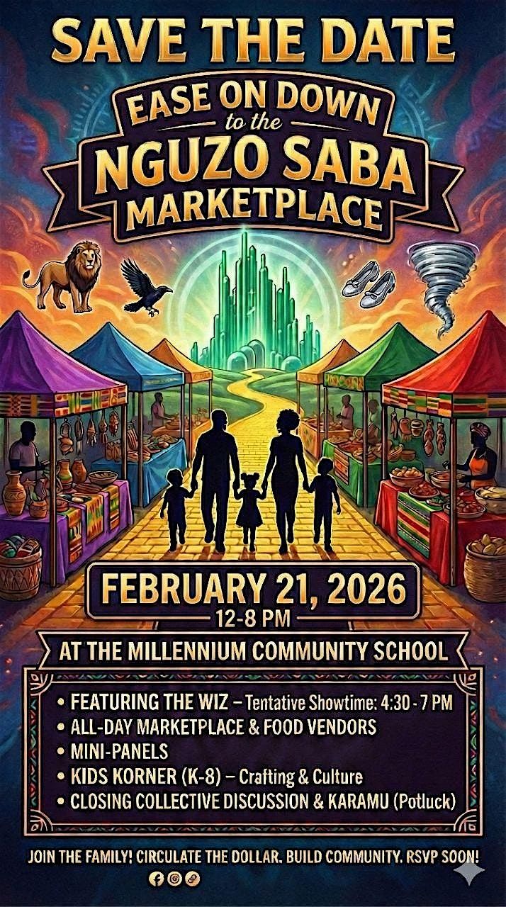 The Nguzo Saba Marketplace is more than a market; it’s a living practice of our 7 principles (Umoja, Kujichagulia, Ujima, Ujamaa, Nia, Kuumba, and Imani). Rooted in African-centered values, this marketplace is a space where culture, commerce, and community come together on purpose.