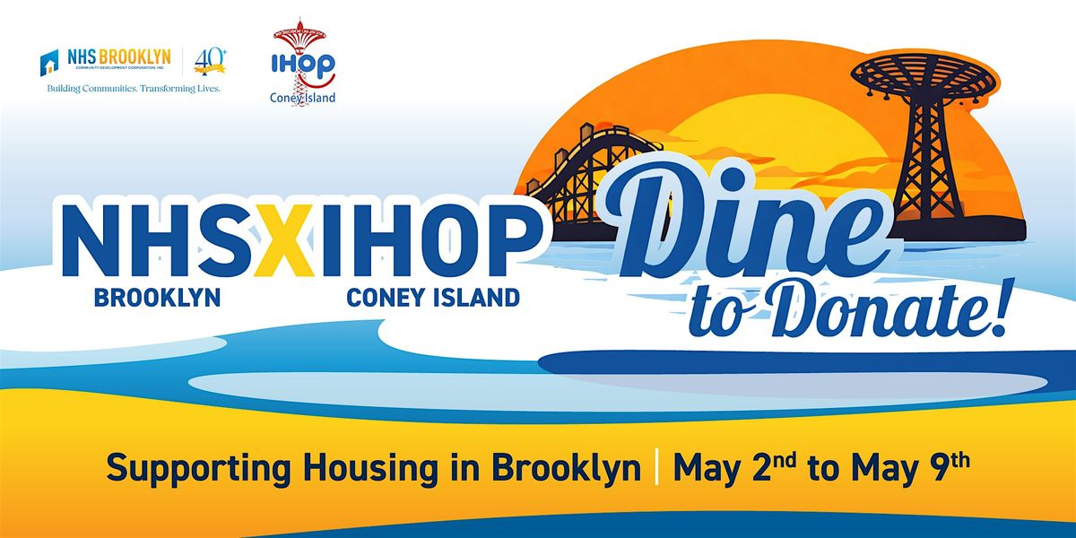 Come hang out in person and support a great cause with Neighborhood Housing Servies of Brooklyn & Coney Island I HOP. Just dine with us and help make a difference—easy and tasty! Bring your friends, family enjoy some pancakes, and contribute to the community.