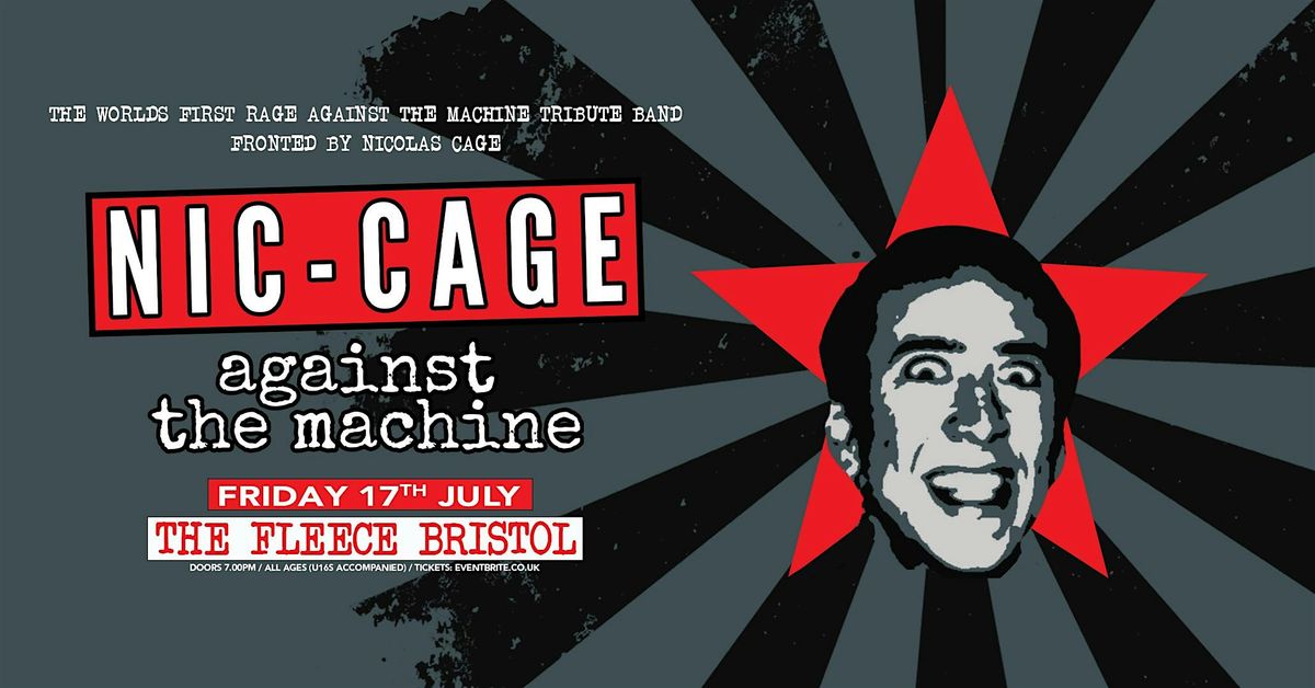 Move over Elvana, we've got something even better. To summarise, it's a Rage Against the Machine tribute band, fronted by a Nicolas Cage tribute, with props.