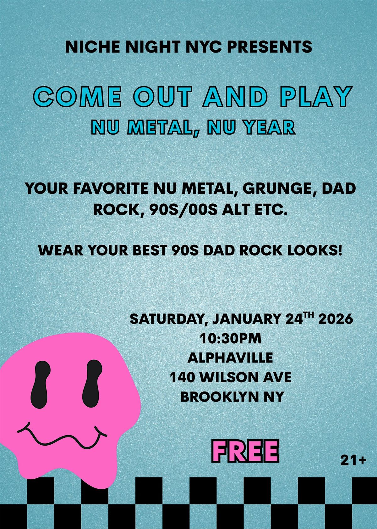 A special nu metal nu year & dad rock version of Come out and Play! Dress up!!About this Event
