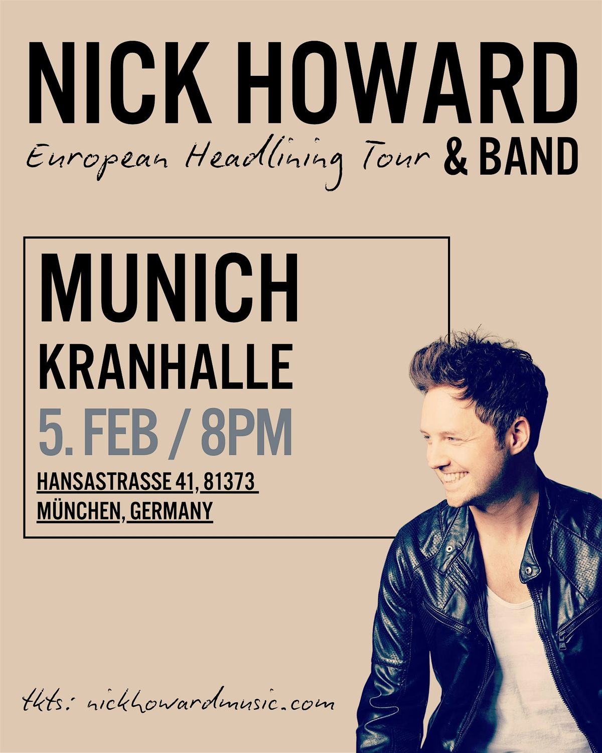 Nick Howard ist mit neuer Musik und seiner großartigen Band wieder in Europa auf Tour. Kommt alle vorbei und erlebt mit uns einen Abend voller Musik, Zusammensein, Einheit und Liebe.