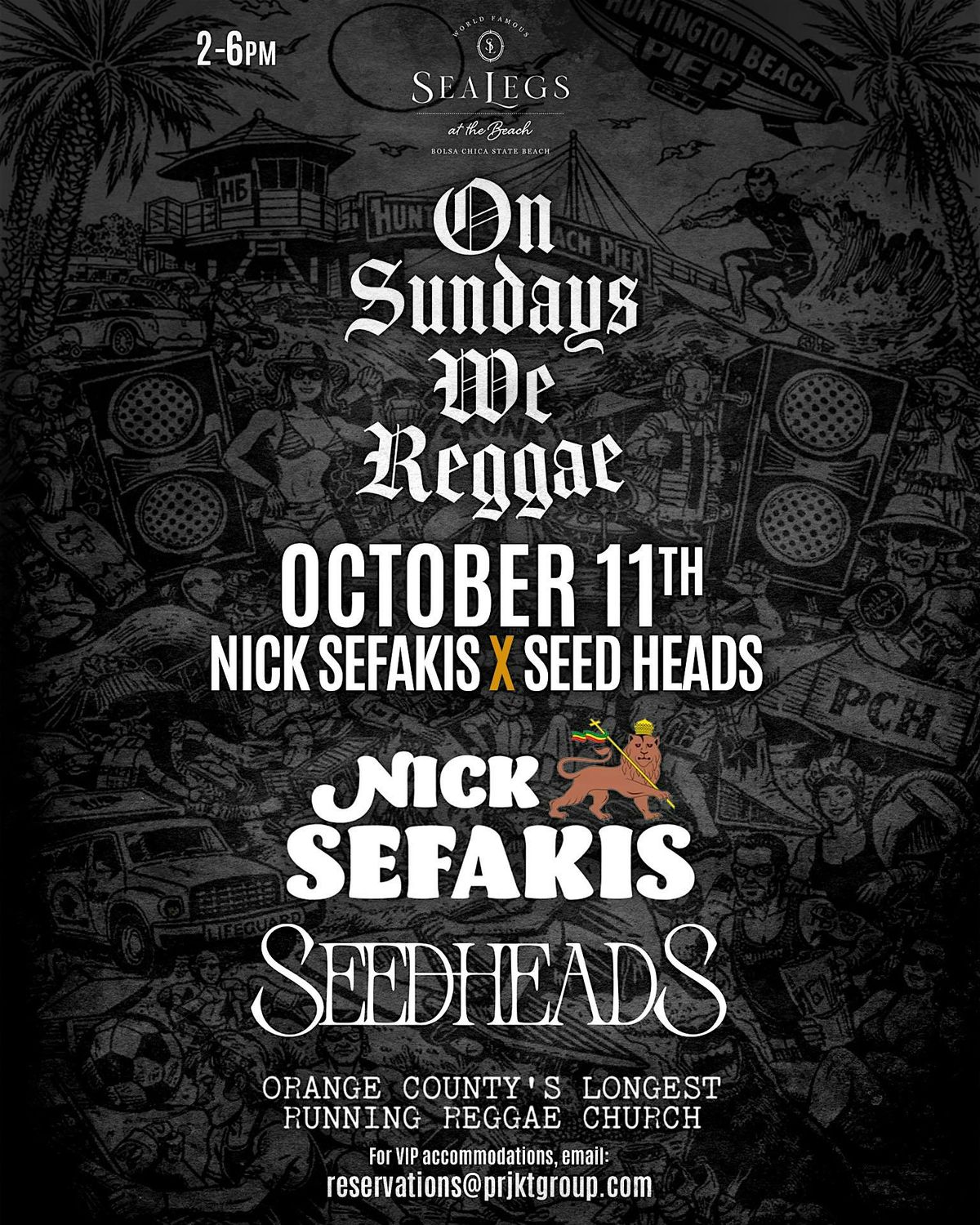 Come see Nick Sefakis X Seed Heads at Sealegs at 2pm. All ages welcome. For VP reservations email [email protected]