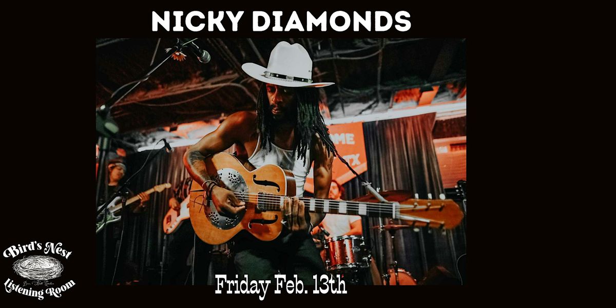 Welcome to the Nicky Diamonds at Bird's Nest Listening Room in Dunn NC! Join us at 311 E Broad St on February 13, 2026 at 7:00 PM (Eastern Time) for a night filled with great music and good vibes. Nicky Diamonds will be showcasing their latest tracks, so get ready to groove to some awesome tunes. Don't miss out on this opportunity to enjoy live music in an intimate setting. See you there!