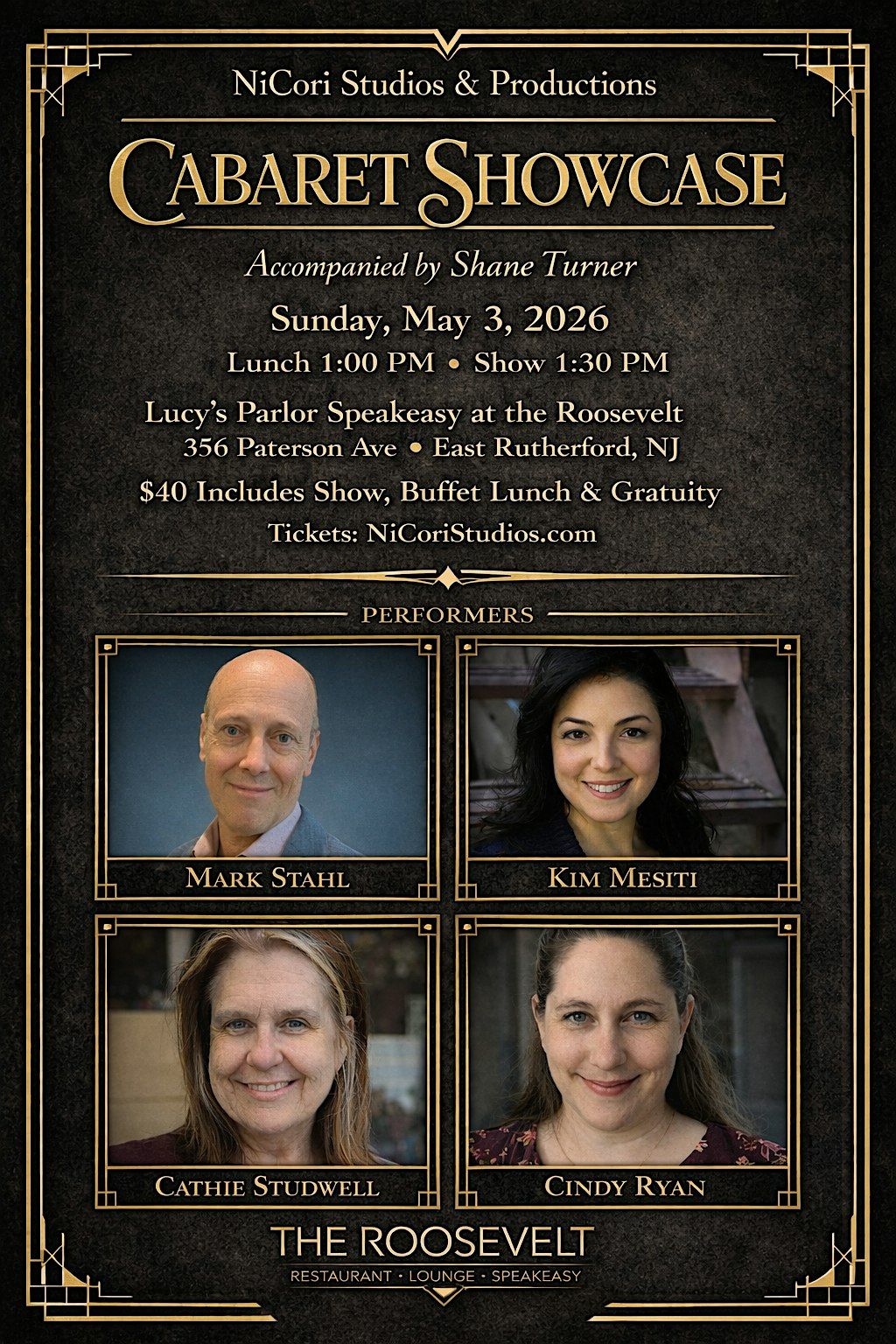 Join us for an afternoon of music in Lucy's Parlor Speakeasy at the Roosevelt in East Rutherford, NJ to celebrate the great American Songbook and the art of Cabaret Performance.