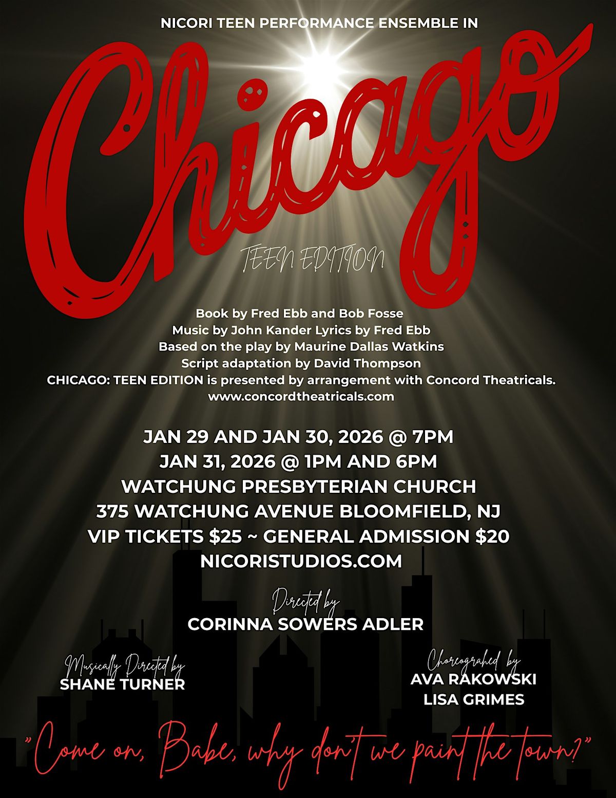 NiCori Teen Performance Ensemble stars in this iconic musical about M**der, mayhem, and Jazz!